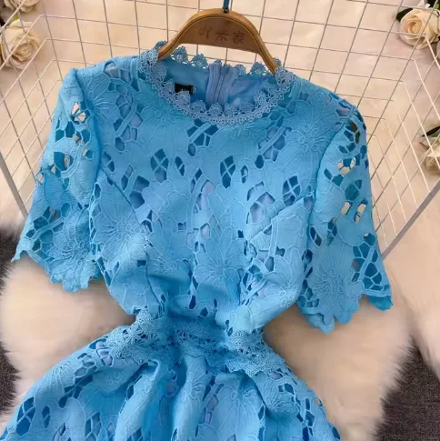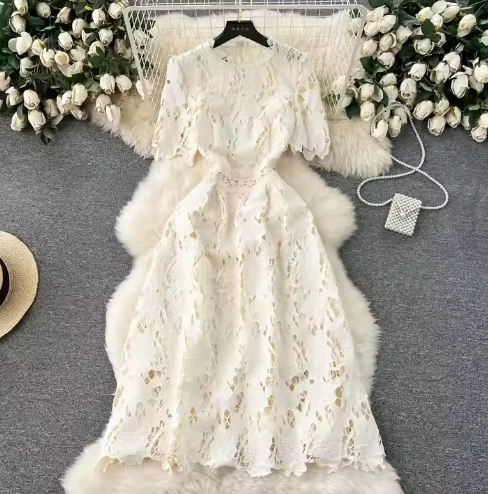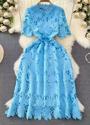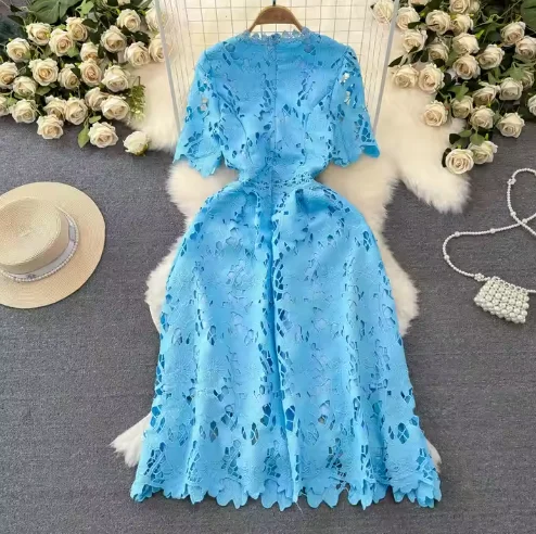 New Arrivals for Women Elegant Mid-Length Dress Beautiful Embroidery Waist-Cinched Eco-Friendly Featuring Lace Button Sweet